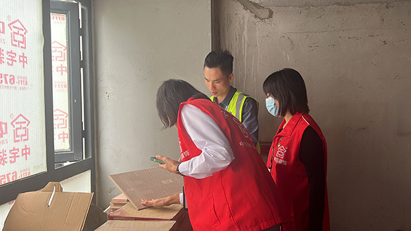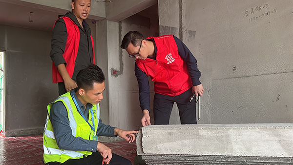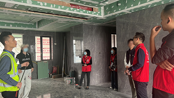 在巡检的过程中,难免会遇到业主,他热心向我们反映装修过程所遇到的问题,我们中宅装饰巡检团队和第三方监理公司现场进行沟通,始终秉持着认真负责的态度,深入了解情况后,及时上报项目经理,让项目经理跟进后续,让业主吃了一个“定心丸”,装修放心交付于我们,让您装修全程无忧,安心享受美好家居生活。