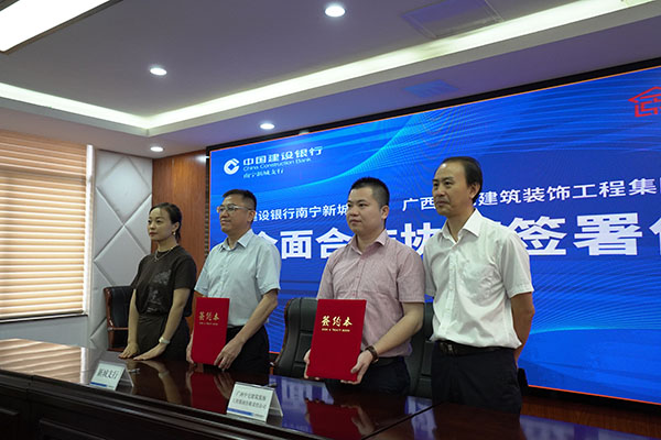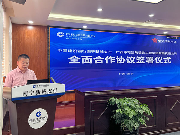 6月14日上午,广西中宅建筑装饰工程集团有限责任公司与中国建设银行南宁新城支行全面合作协议签署仪式,在之前的合作基础上,达成了这次战略合作签约仪式,本次签约是携手并进,共创美好家居生活典范。