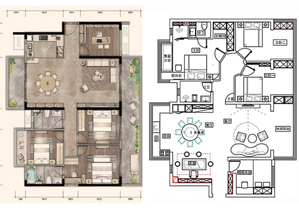 →卧室墙面拆掉后,重新规划,放大空间功能。