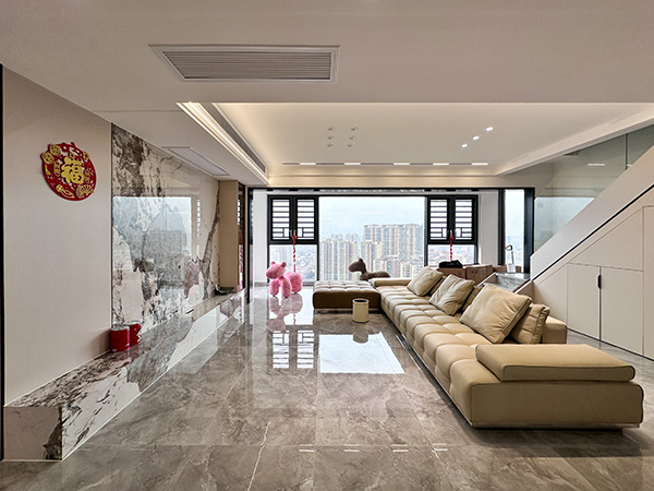 拆除阳台推拉门,打通客厅和阳台,超大玻璃落地窗很好引入室外光线,激活阳台的亮度、景观度与自由度,通透舒适的家一下就呈现出来了。