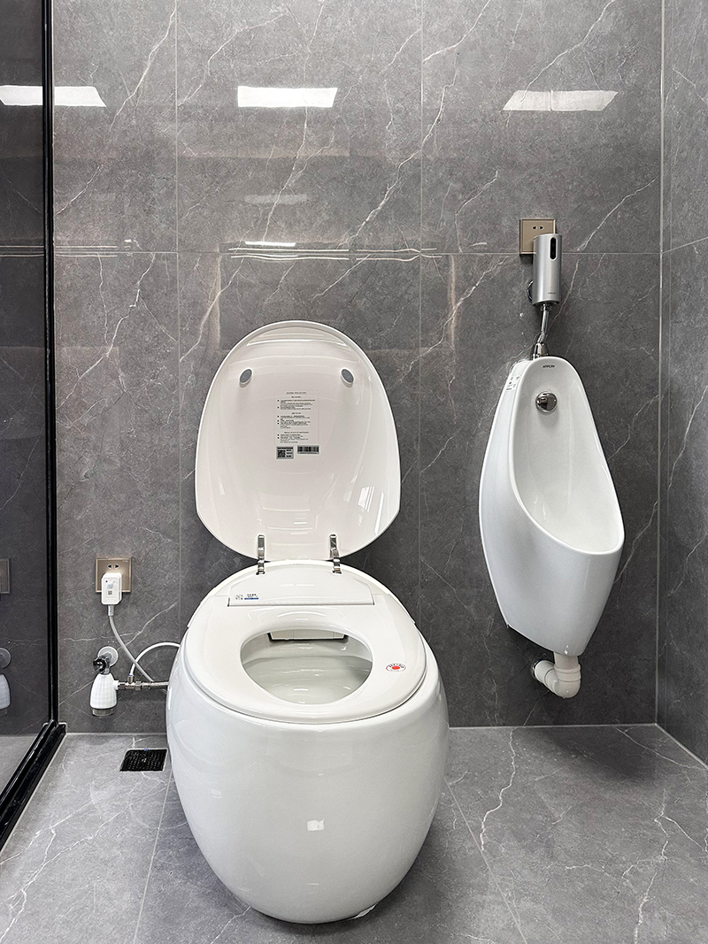 主卫设计了男女便池,解决了男女上厕所不便的难题,马桶选择智能化,智能马桶有自动加热的功能,解决了冬天上厕所冷的问题,智能化改变了我们的生活。
