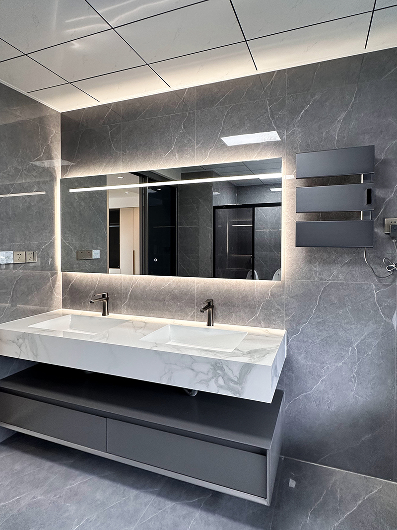 洗手间镜柜一体的设计,既是仪容仪表整的理大师又是储物收纳的好伙伴,把多功能运用到极致。