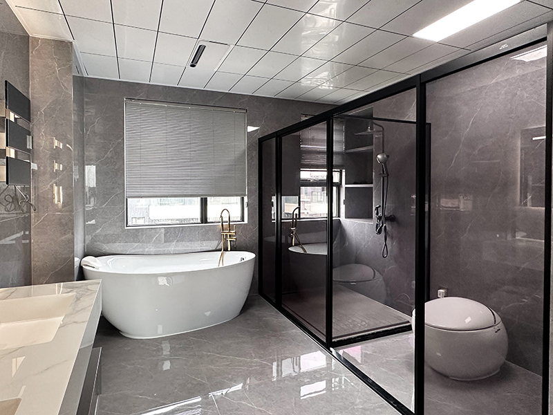 独立的浴室,把沐浴与泡澡分开,可以直接沐浴,浴室墙上设计壁龛,能收纳沐浴用品,清理方便,兼顾实用性与功能性。