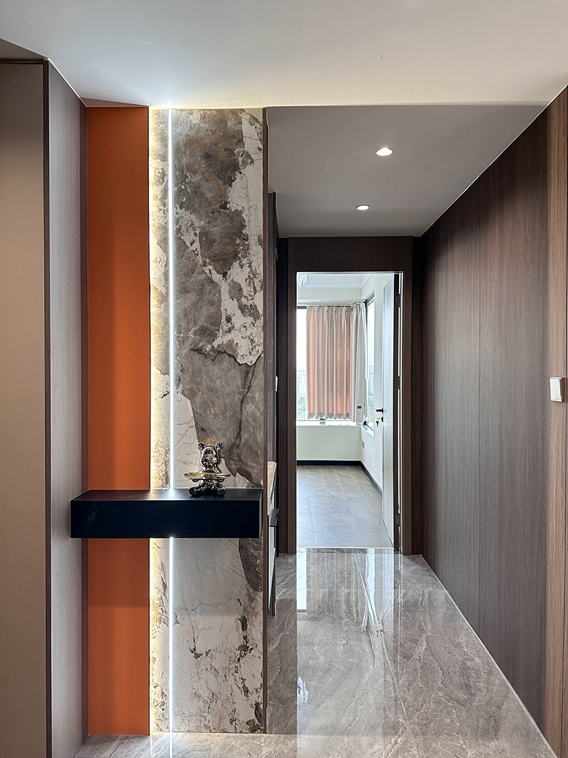 入门设计了一个4.4米的衣柜,不再为收纳而发愁,空间变得简雅有质感。入门自然原木地板一直延伸至室内,环保健康,原生态的美,成为家具的首选。室内无主灯的设计,光线变得更柔和,不会对眼睛造成刺激,让我们拥有一个安逸、舒适的睡眠空间。