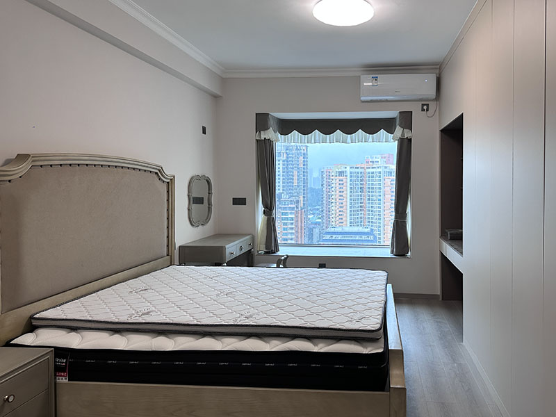 卧室一门到窗的衣柜,衣物、棉被、其它物品收纳问题不用再发愁,衣柜彻底帮其解决了这个世界难题。美式乡村风实木布艺大床更加立体、极富艺术张力,优雅高贵又不失自由洒脱。