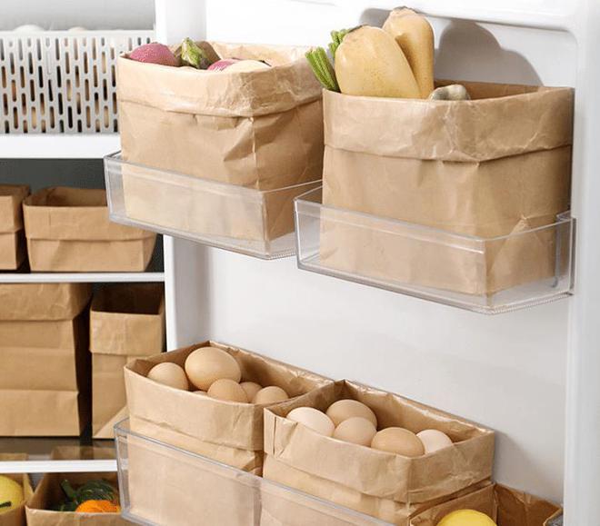 冷藏区的抽屉一般比较深,可以利用牛皮纸袋!