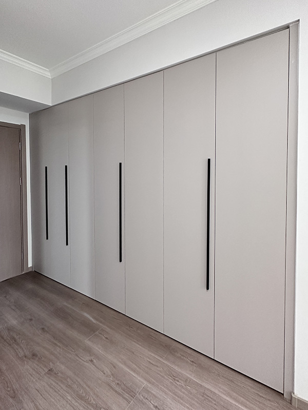 不同色彩的材质,经过光线变化的堆叠出丰富的层次感。白色墙面+原木色元素重叠搭配,散发出自然清新的韵味,直线勾勒出空间的质感。墙面嵌入超大衣柜,维持空间收纳维度的平衡。