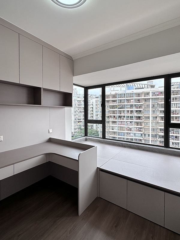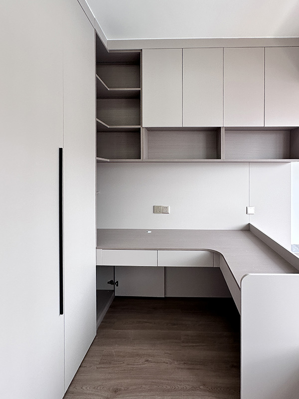 以实木“绘制”儿童房,集衣柜书桌榻榻米床为一体共存的全套配置,衣服在方寸之间收纳,学习在方寸之间静静用功,书籍在方寸之间充实。