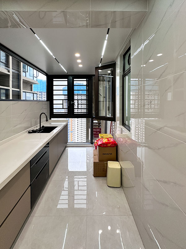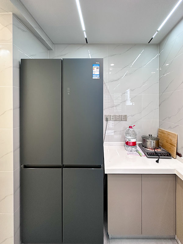 I型厨房设计,包容性极强,上下一整排橱柜,智慧收纳大师,将日常用品、烹饪食材、厨具收纳其中,让零乱空间变得整洁如新。一锅一灶一菜一调料,一道道美食佳肴。这里不仅是烹饪美食的场所,更是家人欢聚、分享美食的地方。入户嵌入式双开门冰箱,如同一个贴心的守护使者,储存新鲜的水果、食材,确保每一口都新鲜与美味。