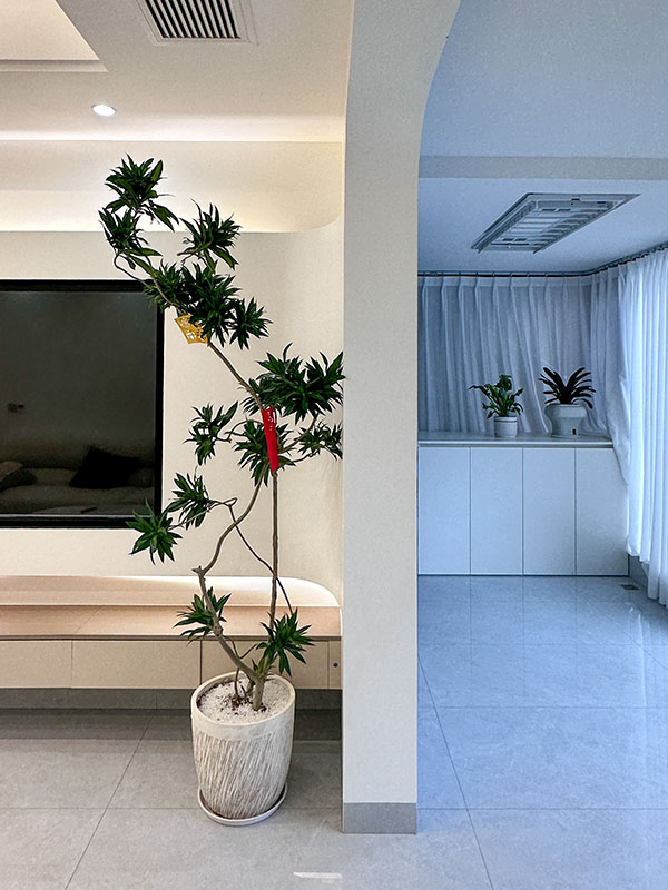 阳台打通之后,以圆弧门为依托,优雅柔美。阳光透过透明的玻璃,洒在柔和的弧形门上,犹如一道道美丽的光环,为这个空间增添了一抹神秘与浪漫。一侧洗衣柜设计,将洗衣机完美地隐藏其中,实用又美观。空间绿植彼此交相呼应,自然脉络清晰可见,绿植增添阳台的生机与活力,仿佛将大自然引入家中,让人感受大自然的清新与美好。无论是晨曦微露还是夜晚星光点点,这里都是一个让人心旷神怡的好地方。