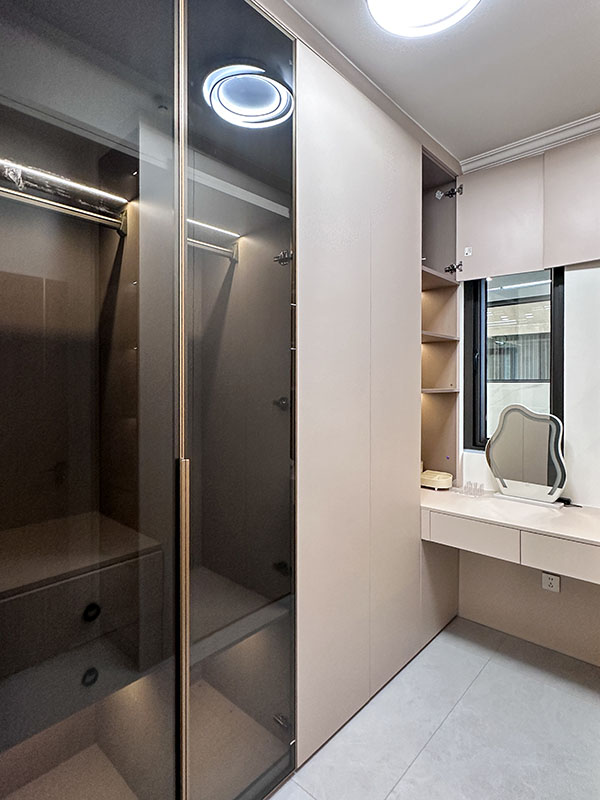 女主人独立的衣帽间,犹如一个精致的时尚殿堂。一整排整整齐齐排列的衣服,每一件都经过精心挑选和用心的搭配,彰显出女主人的独特品味和个性。从休闲T恤牛仔裤到优雅的长裙西装,每一件都承载着女主人的独特风格和故事。衣帽间中间是一个精致的化妆台,坐在化妆台,镜子面前,轻轻描绘出精致的妆容。每一个细节都力求完美,从眼影到口红,精心打扮。在这里,女主人展现出最美丽的自己,也收获了满满的自信和魅力。