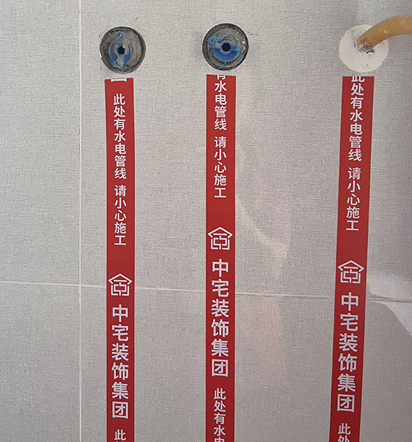 墙砖铺完后,标出水管线路的走向,为防止后期施工时破坏水管,为后期施工奠定安全基础