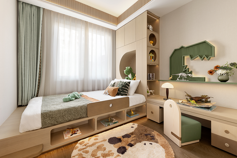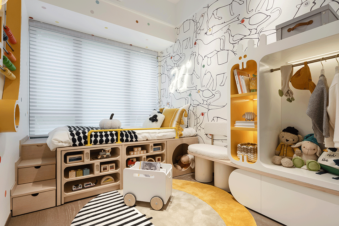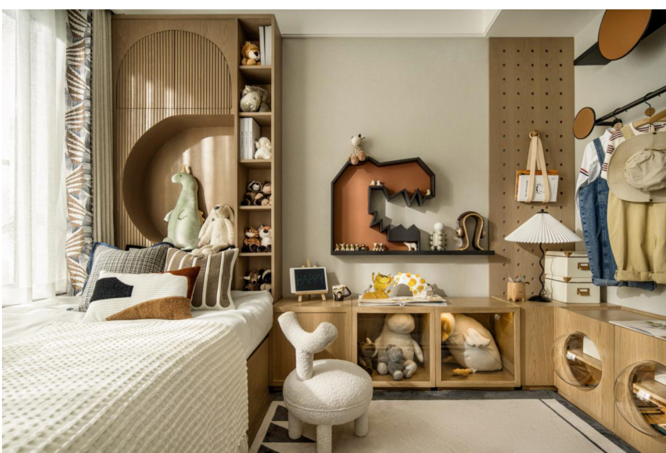 最后提醒:避开悬空高架床、大面积玻璃、复杂吊饰、过高开放式架子这些坑,装修时多留可调节空间,让儿童房能跟着孩子一起“成长”,省心又实用!