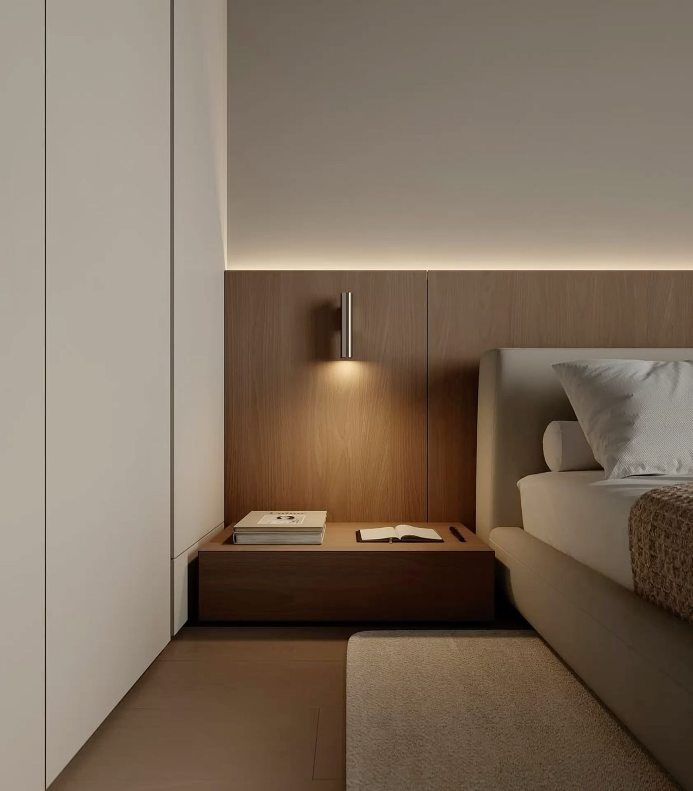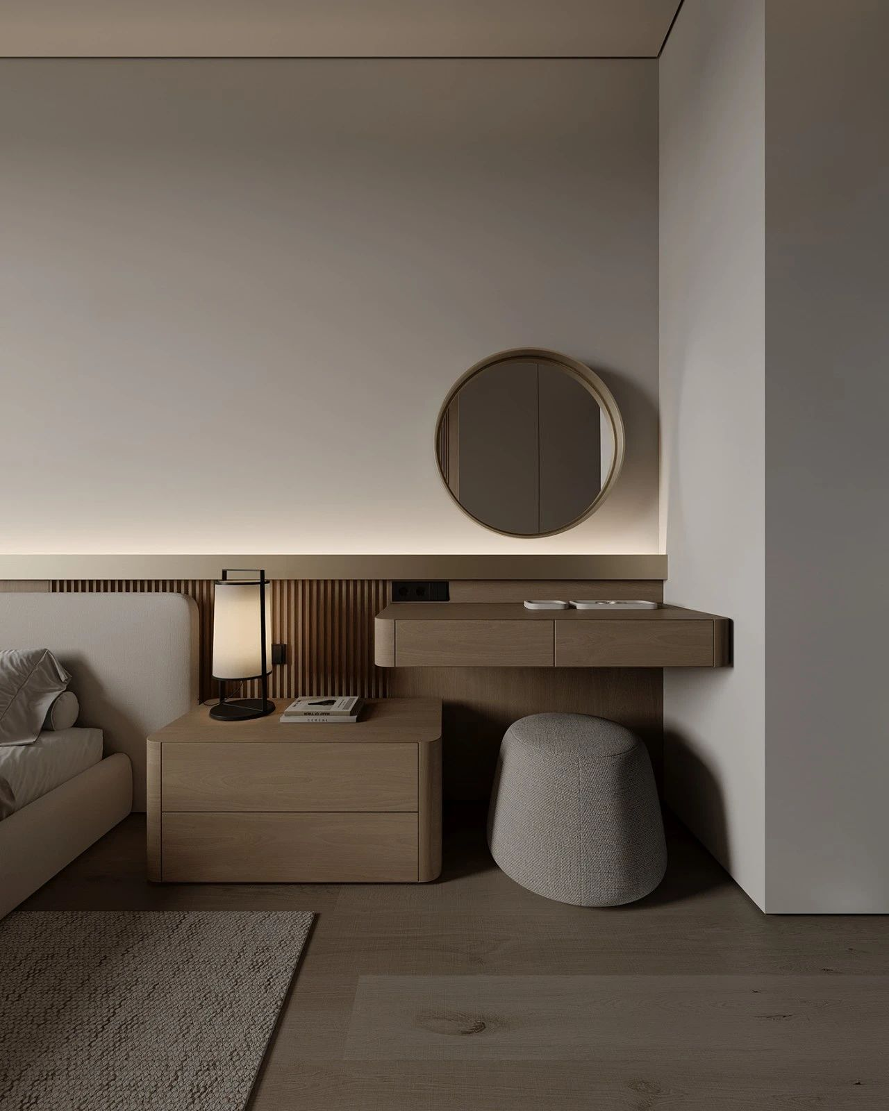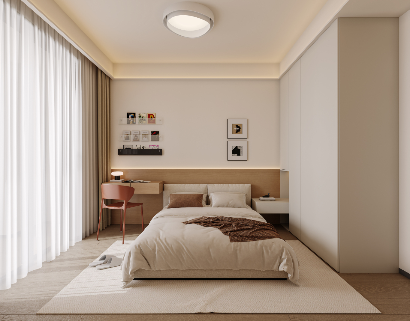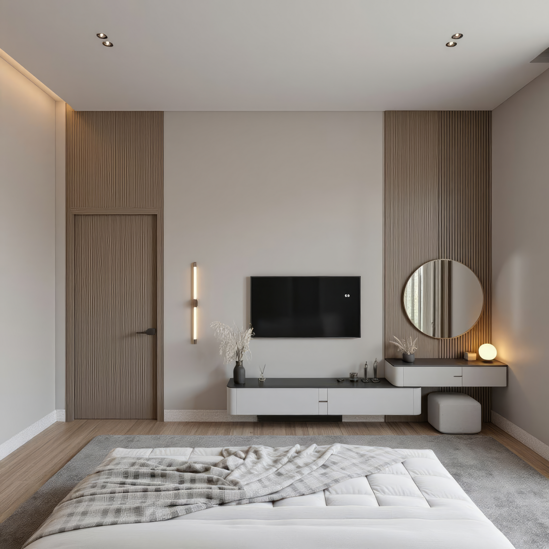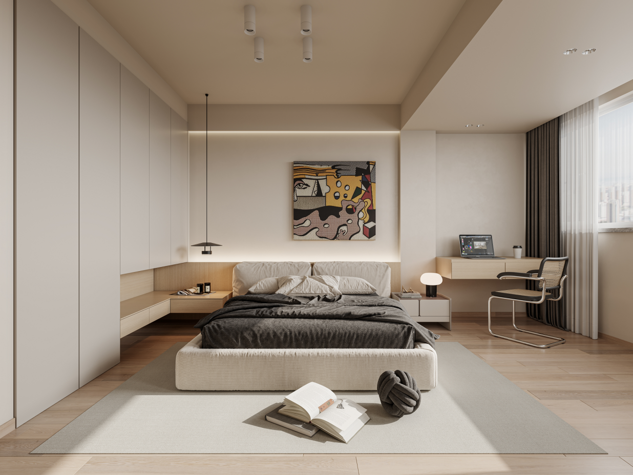 小卧室(≤10㎡)选1.5m床+推拉门衣柜+单侧床头柜,放弃独立梳妆台,用壁挂或折叠款;