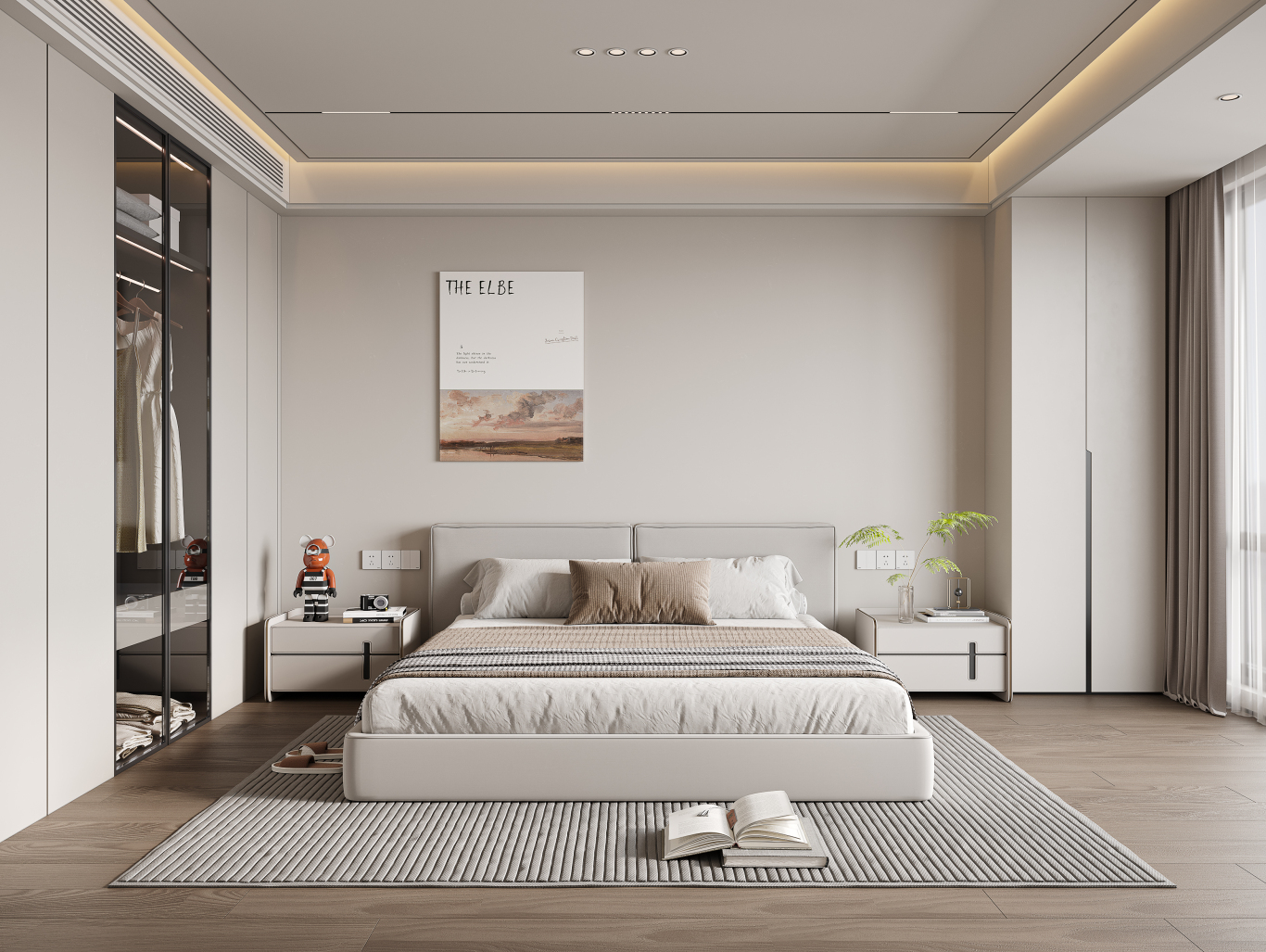 衣柜摆放优先选床尾对面墙,不挡门、不挡窗,不影响动线,还能形成视觉焦点。如果是小卧室,建议做L型衣柜,利用转角空间,储物量直接翻倍,还不会显得拥挤;空间充足的话,整面墙衣柜是最佳选择,收纳能力拉满,还能隐藏杂物,让卧室更整洁。
